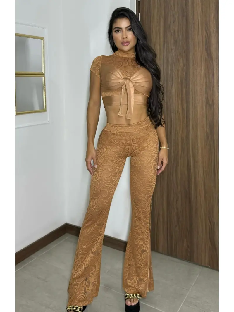 Espectacular conjunto que te permite explorar tu lado sensual y elegante. Diseñado en tela blonda y licra de alta calidad, úsalo de acuerdo a la ocasión ya sea con panty o short.