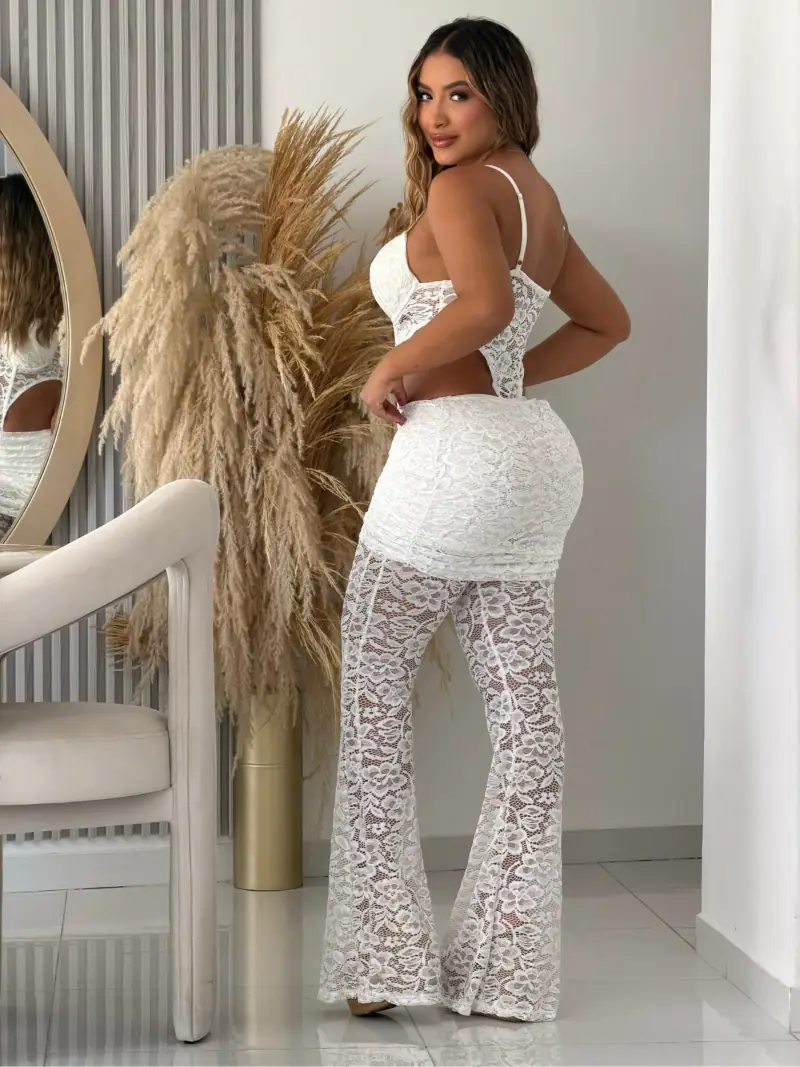 Hermoso conjunto (body, pantalón) es la perfecta combinación entre sensualidad, estilo, comodidad y buen gusto. Elaborado en blonda de alta calidad, incluye panty para tu mayor comodidad. Nuestros diseños estilizan la figura, realzan la cadera y no marcan celulitis.