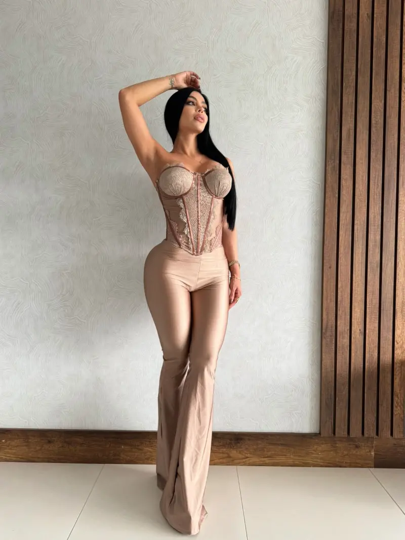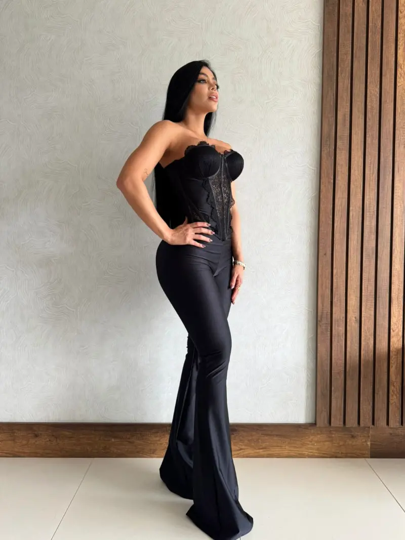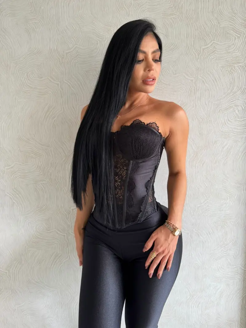 Este hermoso conjunto está elaborado en tela licra de la mejor calidad, el corset tiene copa prehormada de alta resistencia, incluye tira de brasier removible y se ajusta al cuerpo dando horma perfecta. Tiene realce de cadera.