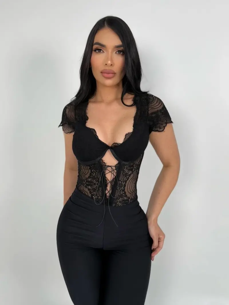 Elaborado en licra de alta calidad y blonda. Tiene varilla de realce en el busto para mayor comodidad.